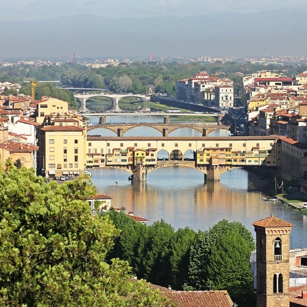 Florence (Firenze) is the capital city of the Tuscany region in north-central Italy. Situated on the Arno River and enveloped by rolling Tuscan hills with Fiesole to the North and the Chianti region to the south, it lies approximately 50 miles west of Pisa. This central location means it is well connected as a major stop for the high-speed trains of the Italian railway system.