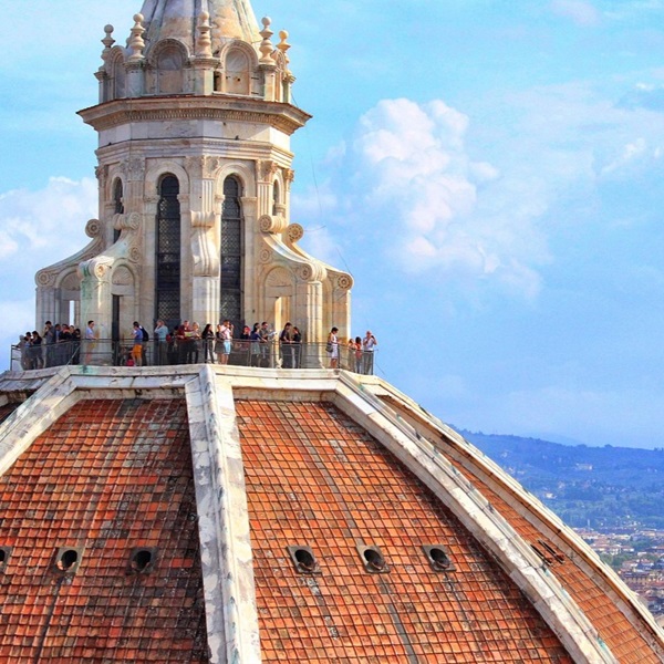 The stairs narrow again and grow steeper towards the most challenging part, and the handrails are a welcome aid as you reach the top of the staircase and the viewing platform at the top of the dome, just below the lantern. The 463 steps climbed are more than compensated as the sky majestically opens and the magnificence of the terracotta city spans in front of you, as you are rewarded with breath-taking views over Florence and the Tuscan hills, ingraining an experience which stays with you much after the descent back to the streets below.