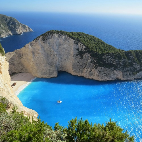 - Navagio Beach (Shipwreck Beach) – One of the most famous beaches in Greece, accessible by boat, featuring the iconic shipwreck and dramatic cliffs.